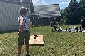 Gibt es bei euch im Ort oder im Verein auch eine gute Idee, für die nur das notwendige Kleingeld fehlt? Dann könnt ihr bis 07.01.2026 eine Anfrage bei Altmühl-Jura einreichen und ab Februar 2026 loslegen! So wie z. B. im Beilngrieser Ortsteil Wolfsbuch, wo für Veranstaltungen jetzt eine ganze Reihe von Outdoor-Spielen zur Verfügung stehen (auf den Fotos ist der Einsatz beim Pfarrfest im Juli zu sehen).