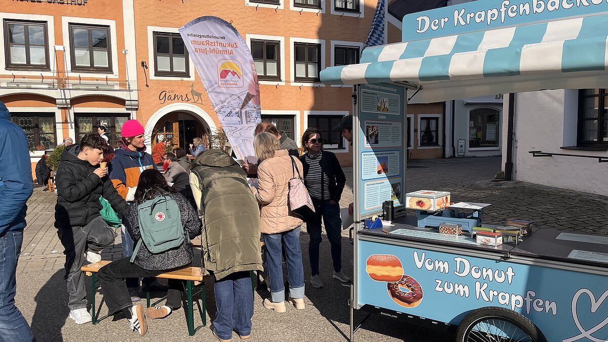 Am Familiensonntag in Beilngries war das Regionalmanagement Altmühl-Jura mit dem Krapfenmobil vor Ort. Echte Krapfen gab es jedoch nicht. Das Mobil steht symbolisch für den sogenannten „Donut- oder Krapfeneffekt“: