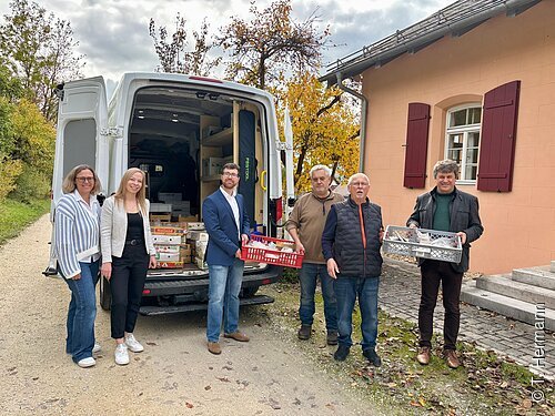 Das Funddepot wurde innerhalb des LEADER-Kooperationsprojekts "Historisches Gedächtnis" eingerichtet und kann seit vergangenem Jahr Funde aus dem Landkreis Eichstätt und der Region Altmühl-Jura aufnehmen. Dort werden sie von Restaurator Peter Handwerker (3.v.l.) in Augenschein genommen, bei Bedarf gereinigt, digital erfasst und neu verpackt in einer platzsparenden Regalanlage eingelagert. Wer in Zukunft auf diese Funde zurückgreifen möchte, beispielsweise bei der Erstellung einer Ortschronik oder für eine Ausstellung, der kann sich an Herrn Handwerker oder Frau Veit (2.v.l.), zuständig für Kultur und Heimatpflege im Landratsamt Eichstätt, wenden.