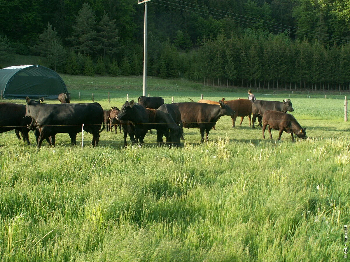 Wir haben einen landwirtschaftlichen Nebenerwerbsbetrieb mit Mutterkühen, Schweinen, Geflügel, Ackerbau und Wald. Unsere Anguskühe dürfen zusammen mit ihren Kälbern auf der saftigen Weide im idyllischen Anlautertal grasen. Angusfleisch ist kurz fasrig, zart und im Geschmack einfach eine Klasse für sich.