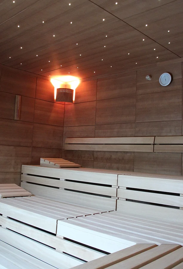 - große Saunalandschaft mit finnischer Sauna, Blockaußensauna und Sanarium