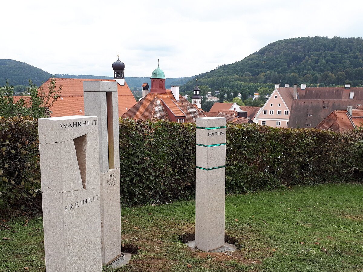 Der Verein für Kultur- und Heimatpflege Greding hat einen Platz unterhalb der Friedhofsmauer mit einer Fläche von ca. 180qm neu gestaltet. Der Platz liegt innerhalb der historischen Stadtmauern und war aufgrund der versteckten Lage, umgeben von einer Hecke, bisher fast ungenutzt. Auf der Rasenfläche wurden zusammen mit dem Künstler Rupert Fieger aus Eichstätt Stelen aus Juramarmor errichtet. Der Platz bietet den Friedhofsbesuchern, aber auch Einheimischen wie Touristen nun fernab des Straßenverkehrs eine Möglichkeit zum Verweilen und Entspannen sowie zum Genießen der Aussicht. Hierfür wurden Sitzgelegenheiten aufgestellt.