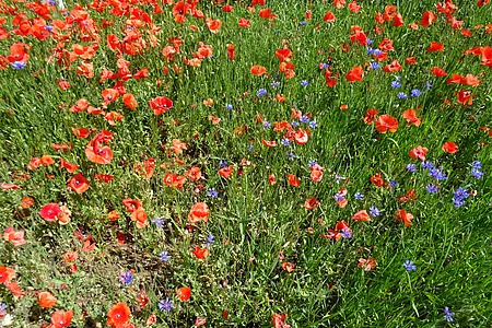 Entlang des Gewässers wechseln sich sonnige und beschattete Partien ab, die von einer artenreichen Blumenwiese umgeben sind.