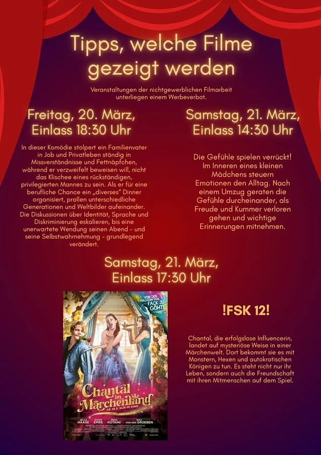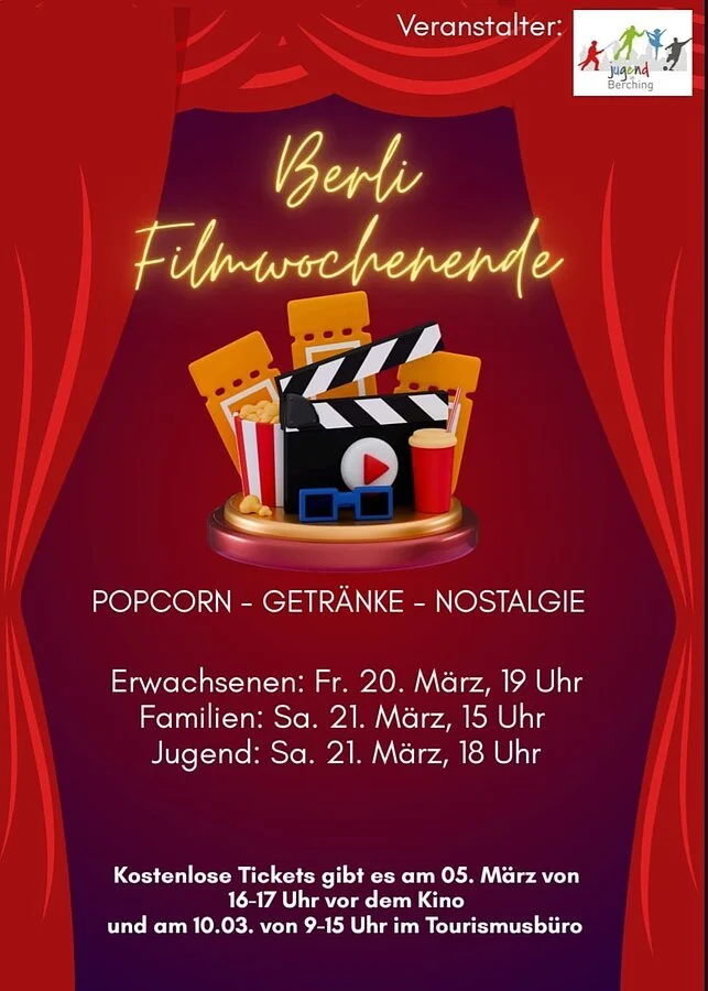 Kostenlose Karten gibt es am 5. März von 16-17 Uhr direkt im Berli-Kino und am 10.3. von 9-15 Uhr im Tourismusbüro.