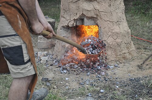 Zum Ende der sogenannten Bronzezeit gelangte das technische Wissen um die Herstellung von Eisen aus dem Mittelmeerraum in unsere Gegend. Für das Schmelzverfahren benötigte "Rennöfen" sind bei uns (derzeit) um 700 v. Chr. erstmals belegt.