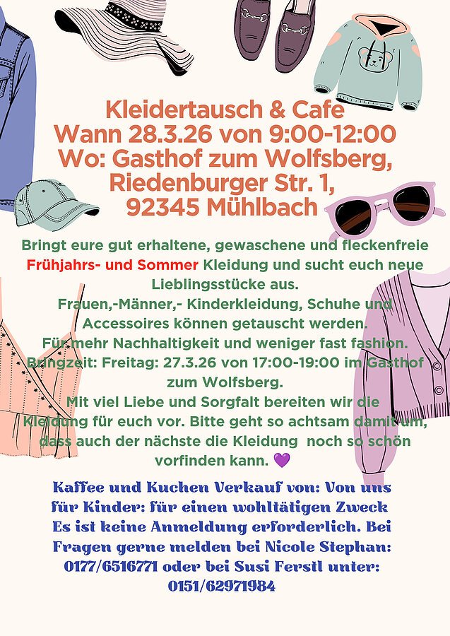 - Getauscht werden saubere, gut erhaltene Kleidungsstücke, Accessoires und Schuhe.