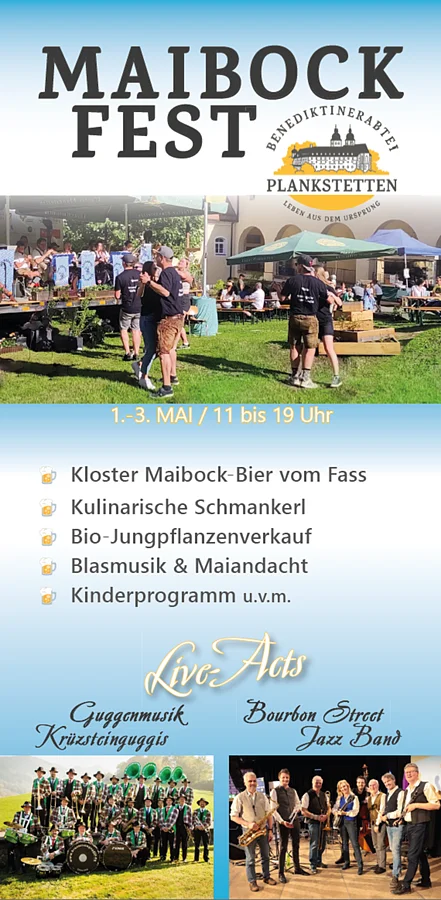 Maibockfest von Freitag, 1. Mai bis Sonntag, 3. Mai 2026 von 11 bis 19 Uhr.