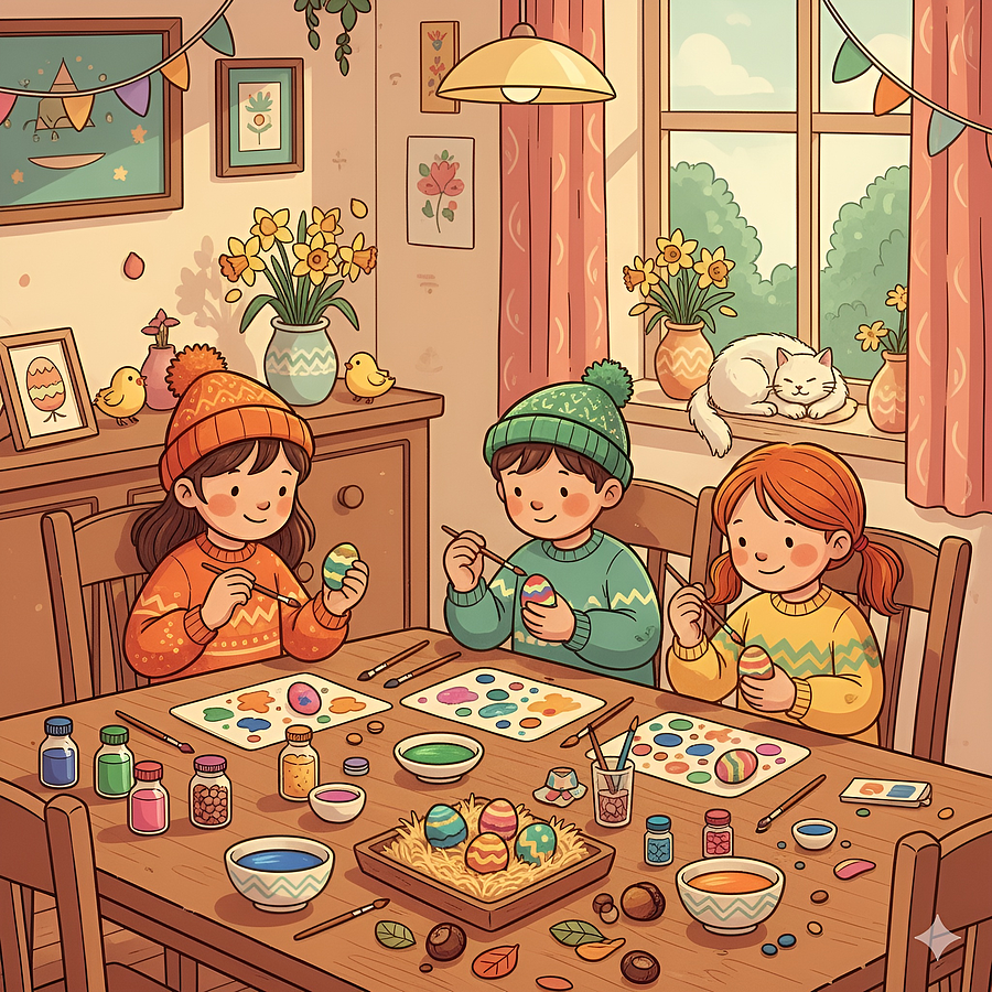 Es werden lustige Dinge zur Osterzeit gebastelt.