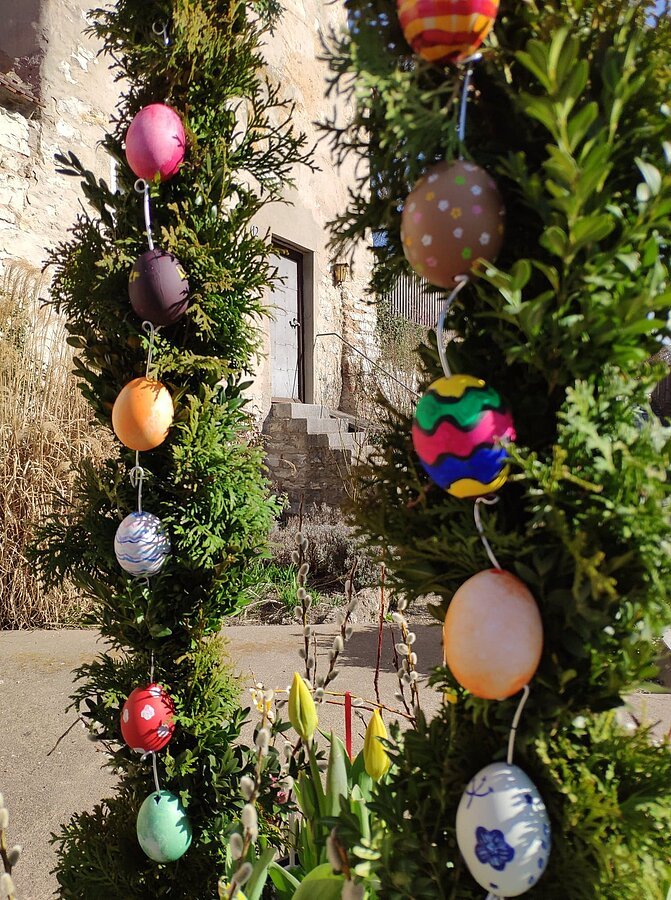 Osterbrunnenfeier am Sebastibrunnen in Greding.