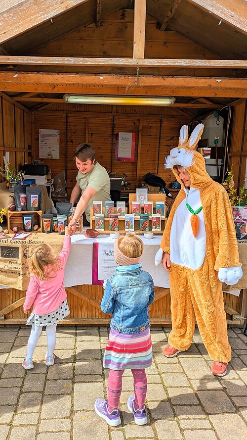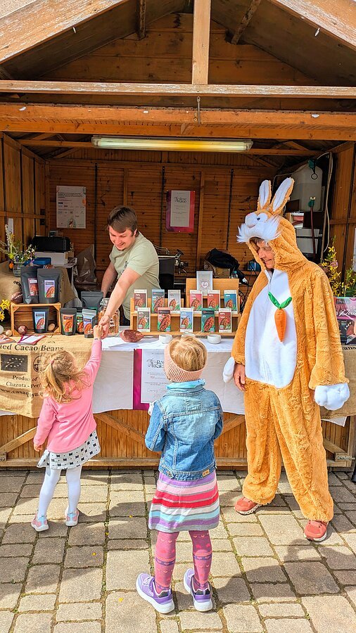 Der Tag wird mit Musik und Live-Musik begleitet, Kinderschminken bringt Kinderaugen zum Leuchten (13-15 Uhr), und für das leibliche Wohl ist selbstverständlich gesorgt. Erfrischende Getränke, heiße Schokolade halten uns warm, sowie eine Auswahl an Schokoladen, Cookies und Kuchen laden zum Verweilen und Genießen ein. Ein Erlebnis für Groß und Klein - mit Spiel, Spaß und Genuss rund um das Osterfest.