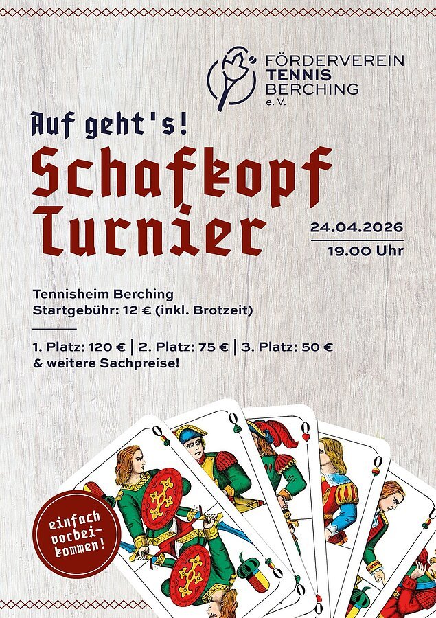 Wir laden herzlich ein zum Schaftkopfturnier im Tennisheim Berching.