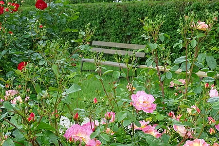 Gruppen können sich auch führen lassen und dabei vieles über Rosen erfahren. Gruppenführungen können Sie gerne bei der Gemeindeverwaltung buchen.