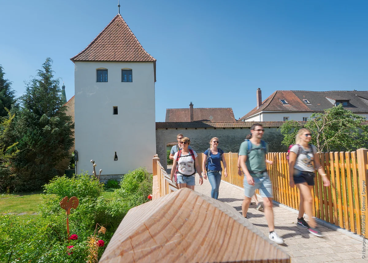 Ausgangspunkt der Tour ist das Haus des Gastes in Beilngries. Durch die Schneider-Peterle-Gasse verlässt man die Stadt und gelangt zum Fischlehrpfad, dem man bis zur Schiffsanlegestelle folgt. Weiter geht es ein Stück den Main-Donau-Kanal entlang, bis der Weg beim Sulzauslass links abzweigt und den Berg hinauf bis zur Marienklause mit der Marienkapelle führt. Danach geht es über die Straße und rein in den Buchenwald am Rande des Sichelbergs. Sobald man den Wald durchquert hat, kann man einen wunderschönen Blick auf Biberbach und das Benediktiner-Kloster Plankstetten genießen. Von hier aus startet der Abstieg nach Biberbach. In der Ortsmitte angekommen führt die Route bis zur Wehrkirche St. Michael und weiter auf die Straße Richtung Plankstetten. Der Straße folgt man ca. 200 m und biegt dann links ab. Der hier beginnende Waldweg führt direkt zum Benediktiner-Kloster Plankstetten. Durch den Klosterhof geht es weiter Richtung Berching. An der Talseite entlang führt der Weg über das Kruzerloch durch den naturnahen Buchenwald. Durch den Hochwald oberhalb von Eglasmühle folgt man dem Weg bis zur Weggabelung. Hier leitet der Wegweiser weiter in Richtung Schleuse Berching bis zum Main-Donau-Kanal. Der letzte Kilometer nach Berching führt am Ufer des Kanals entlang. Über eine Fußgängerbrücke quert man den Kanal und befindet sich vor der Stadtmauer des mittelalterlichen Berchings mit seiner sehenswerten Altstadt. Von hier aus folgt man dem Stadtbächlein bis zum mittleren Tor und überquert nach diesem die Sulz. Nach der Lorenzkirche marschiert man rechts durch das Beilngrieser Tor aus der Vorstadt. Direkt nach dem Tor führt die Route links ab und weiter zum Alten Kanal, dem man nach rechts folgt. Über die Maria-Hilf-Kapelle, dem Main-Donau-Kanal und die Schleuse Berching gelangt man wieder zurück nach Plankstetten. Von hier aus überquert man den Alten Kanal und läuft weiter bis zur Plankmühle. Der ersten Möglichkeit rechts folgt man den Hang hinauf und gelangt zum Spazierweg Sommerleite. Dieser Weg führt erneut zum Alten Kanal, der hier als trockene Fahrrinne kein Wasser führt. Nach dessen Überquerung geht es über die Kanalbrücke des Main-Donau-Kanals und dem Stadtweiher beim alten Bahnhof in Beilngries zurück zum Ausgangspunkt der Tour.