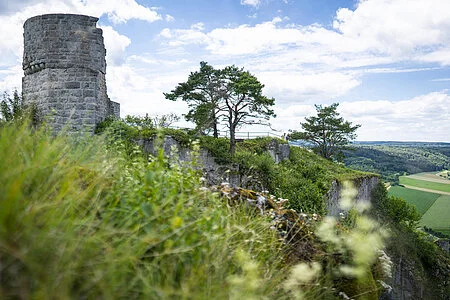 Folgen Sie der Verlaufsmarkierung Richtung Arnsberg. Am Ortsausgang (Lohmühle) gehen Sie links über die Brücke und queren die Schambach. Folgen Sie dann dem rechten Forstweg. An der Gabelung (Sulzbuck) führt der Weg rechts weiter und biegt nach einer Lichtung links ab, geht wieder talabwärts und trifft auf die Straße. Nach 200 Metern erreichen Sie den Ort Gungolding. Der Straße folgend marschieren Sie durch den Ort, queren die Altmühltal und gehen dann in leicht nordwestlicher Richtung weiter. Der Weg zweigt rechts ab und Sie gelangen zur Wacholderheide. Dort folgen Sie dem Panoramaweg bis nach Arnsberg (Einkehrmöglichkeit). Am Sportgelände zweigen Sie rechts ab, queren die Altmühl und gelangen dann vorbei am Zehentstadel zur Hauptstraße. Sie queren diese, gehen dann rechts und folgen dem Weg nach oben, bis Sie zur katholischen Wallfahrtskirche St. Sebastian gelangen. Der Weg geht steil aufwärts weiter und führt im oberen Teil links Richtung Schloss Arnsberg, wo Sie einen fantastischen Blick ins Tal genießen können (Schloss Arnsberg berherbergt ein Hotel garni; in den Sommermonaten ist der Biergarten meist am Wochenende und an Feiertagen am Nachmittag geöffnet). Der Weg führt Sie zurück ins Tal, indem Sie rechts abbiegen und der schmalen Straße folgen. Danach geht es rechts wieder bergab. An der Staatsstraße (EI 11) biegen Sie links ab und folgen nach 200 m dem Weg rechts ca. 1 km auf die Anhöhe. Dort biegen Sie rechts bis zum Waldrand ab, bevor es dort abwärts in westlicher Richtung nach Schambach zurück geht.